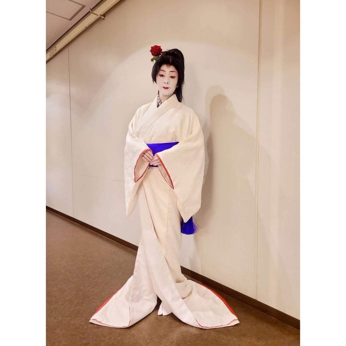 本人はしっかり白塗り、着物、鬘付けて日本舞踊初挑戦でしたが、振付の中村壱太郎さん、演出の野村萬斎さんの意向でフラメンコの要素をたくさん取り入れてくださり、お陰様で堂々と踊り切っていました。